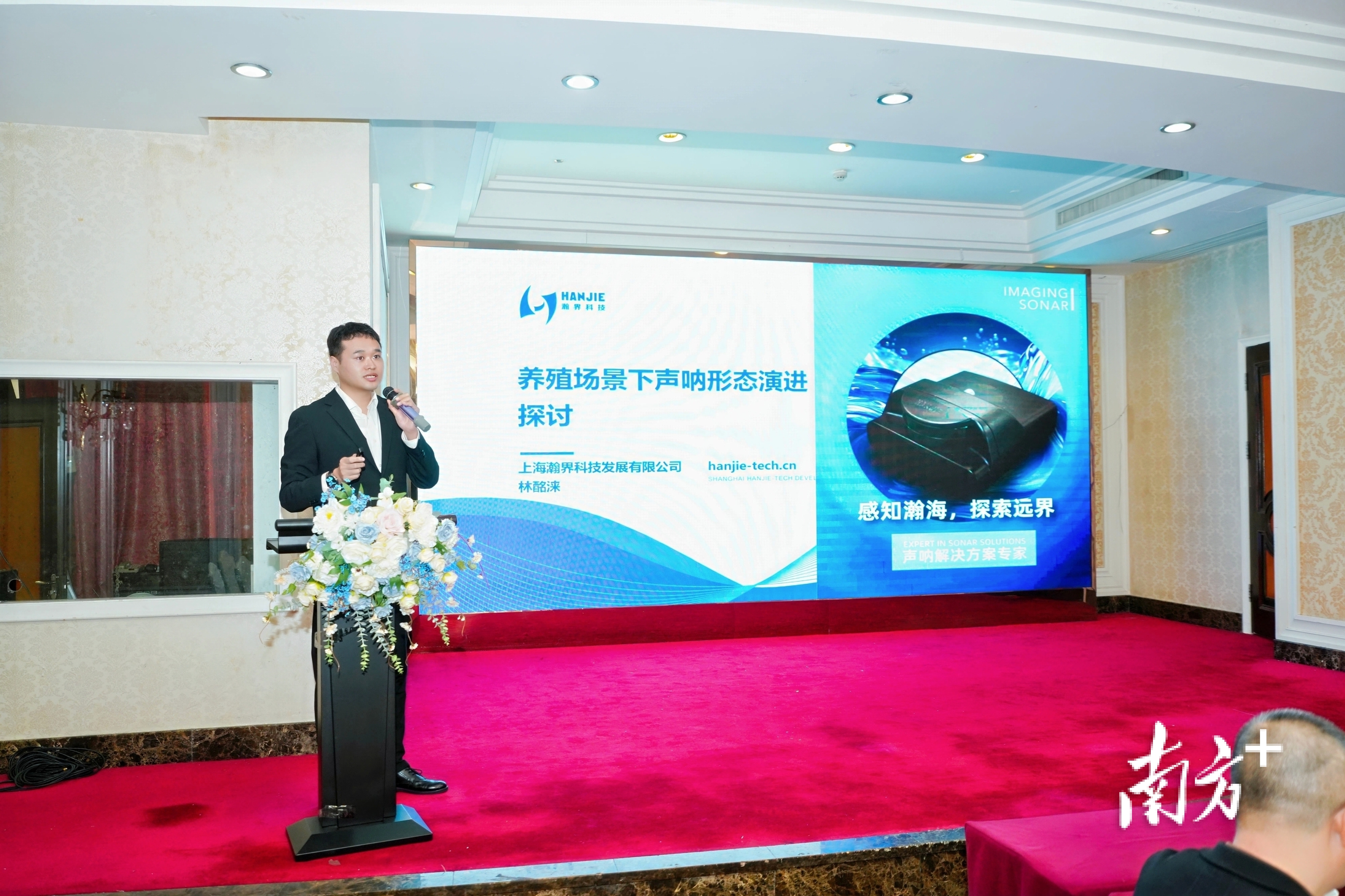 瀚界科技BU负责人林酩涞及销售经理高云涛就《养殖场景下声呐形态演进探讨》及《声呐技术如何在海洋牧场中创新应用》作分享,深度解析了瀚界科技产品技术在海洋牧场中的核心优势及成功案例,声呐技术作为海洋感知的“智慧之眼”,正在重塑海洋养殖的发展格局。